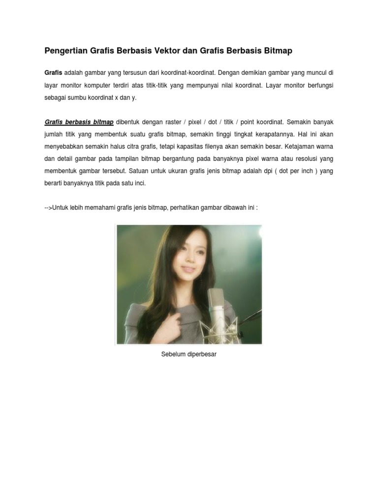 Jika gambar diperbesar melebihi ukuran realnya akan nampak terlihat kurang halus yang bisa mengurangi detail gambar itu. Pada Artikel ini akan mengulas lengkap mengenai gambar vektor dan bitmap, disertai ulasan lengkap pengertian, kelebihan, kekurangan serta aplikasi dan format. Istilah Bitmap disebut juga grafik raster atau gambar Bitmap.